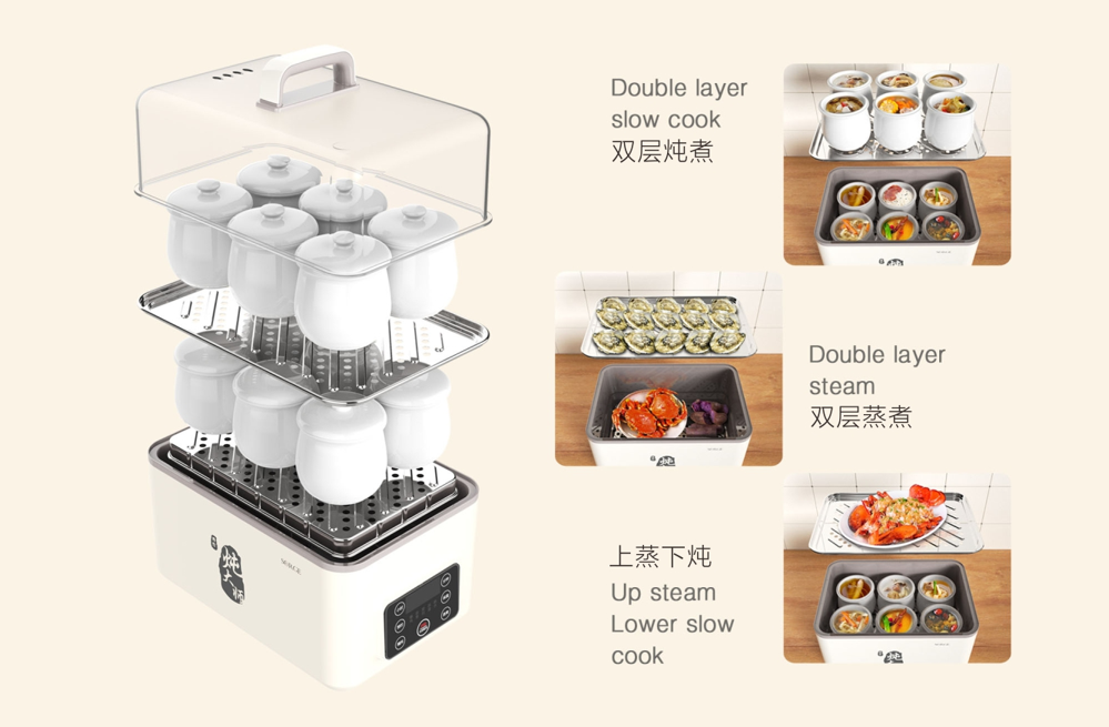 多功能:可炖可蒸,三餐一锅即可。它既可用于商业用途,也可用于家庭用途。